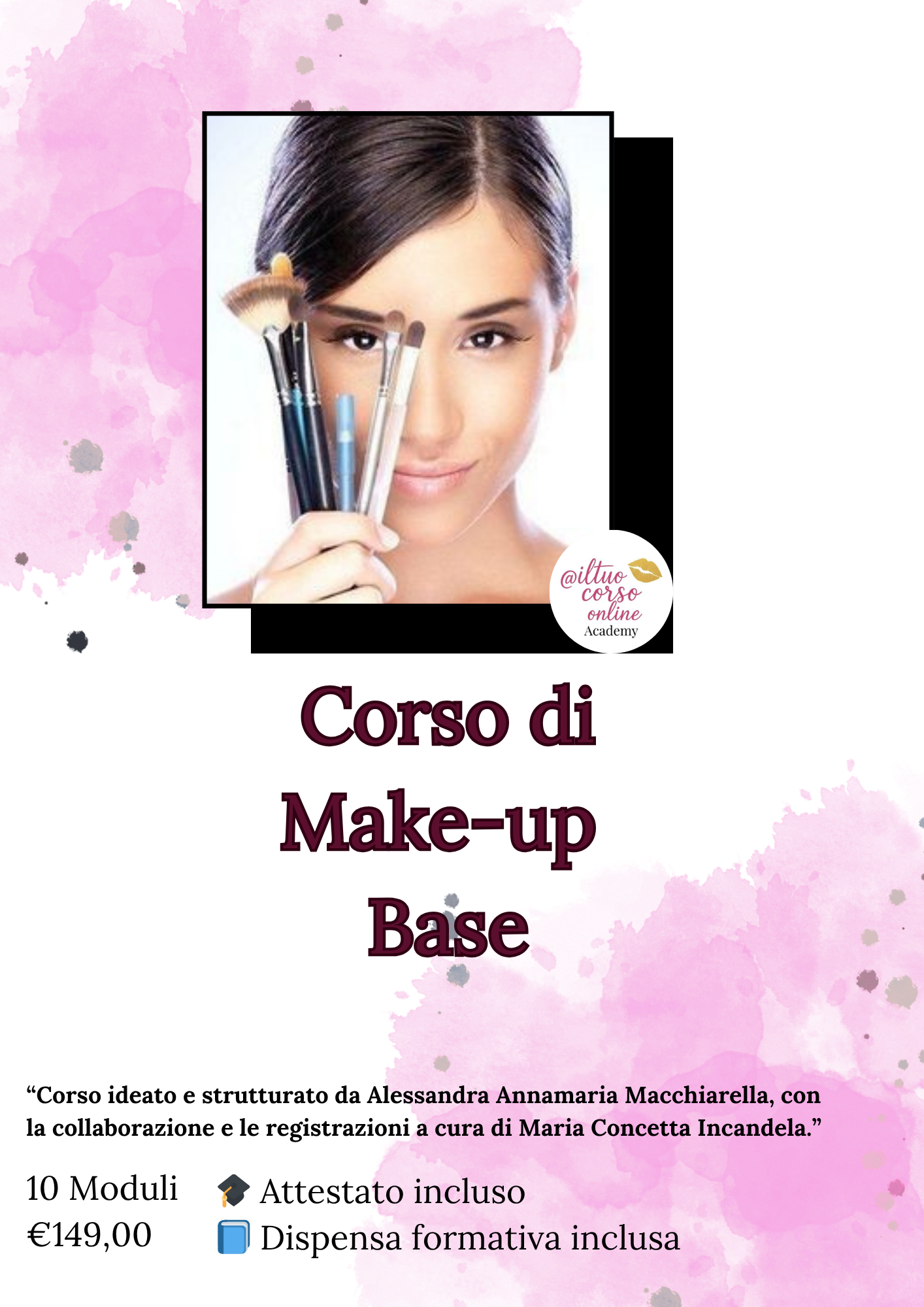 Il Corso di Make-up Base è pensato per chi desidera avvicinarsi al mondo del make-up e apprendere le tecniche fondamentali per realizzare un trucco impeccabile, armonioso e adatto a ogni occasione.