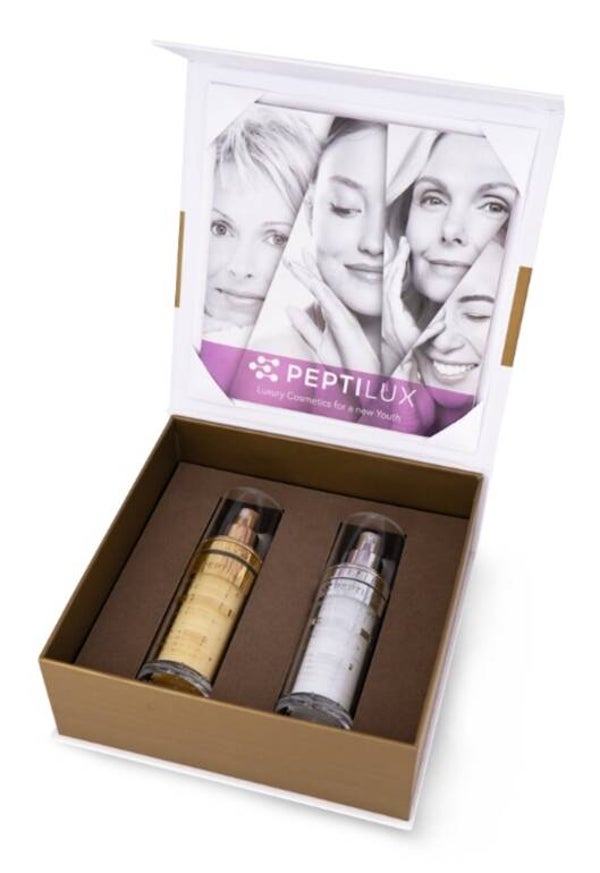 Il prezioso cofanetto Peptilux "Luxury Skin Care Serum Set" racchiude due potenti trattamenti antietà, dedicati a tutti i tipi di pelle, che aiutano il viso a ritrovare la sua naturale bellezza.